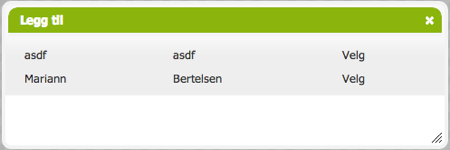 For å legge til personell klikk på Legg til. Det åpnes da et vindu. Klikk på Velg for å velge person.